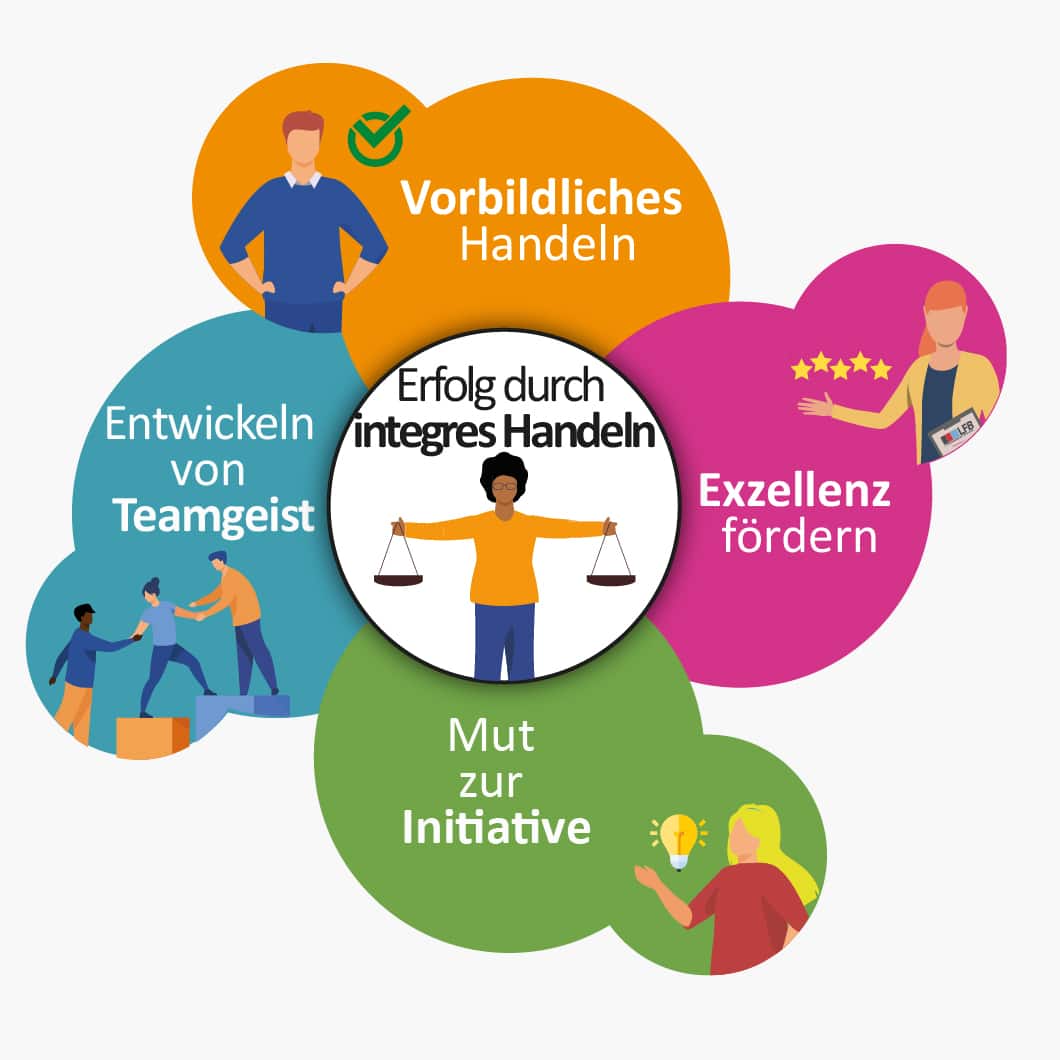 Integres Handeln unterstützt uns dabei, gemeinsam die eigentliche Bedeutung der Aktivitäten von LFB hervorzuheben und ein konstruktives und erfolgreiches Arbeitsumfeld zu fördern. Bei integrem Handeln geht es darum, ein Klima gegenseitigen Vertrauens, des Respekts, des aktiven Zuhörens und der Ehrlichkeit unter allen Mitarbeitern zu schaffen.
